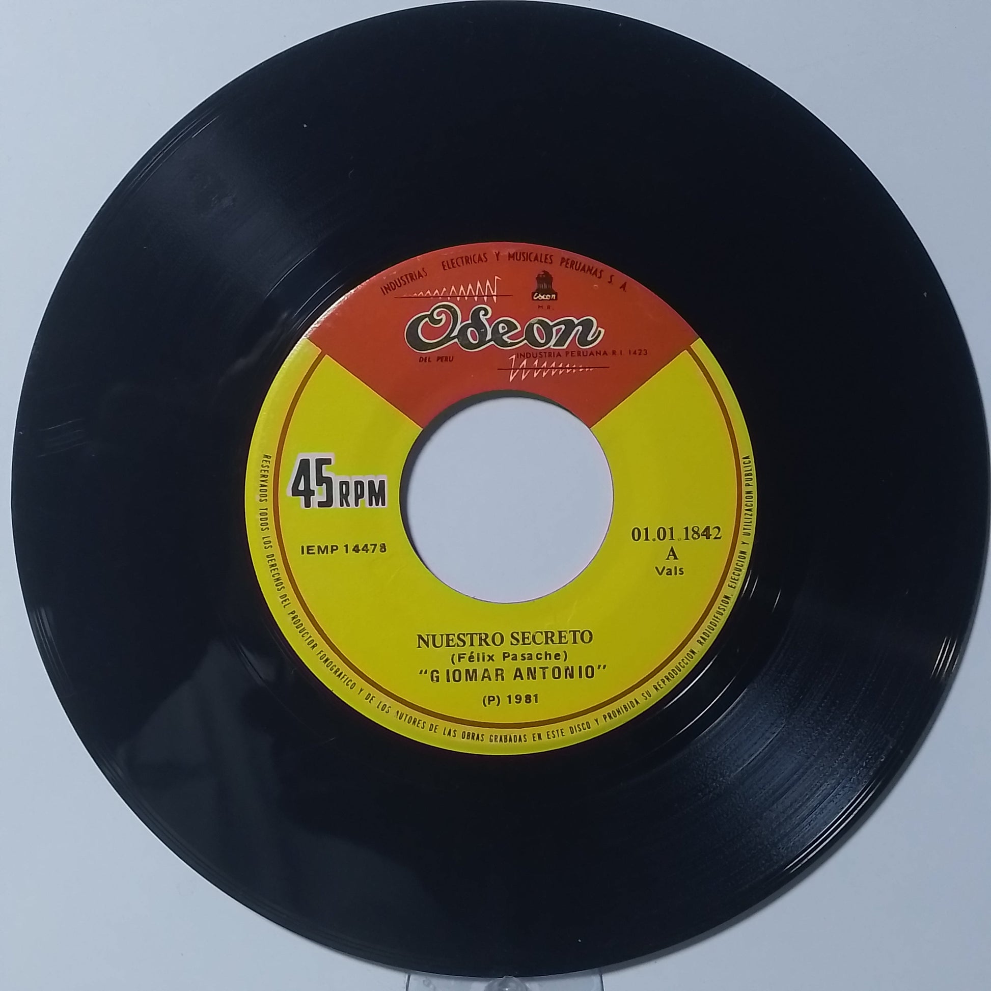 single 7" Giomar Antonio Nuestro Secreto / Cañaveral made Peru 1981 criollo folk