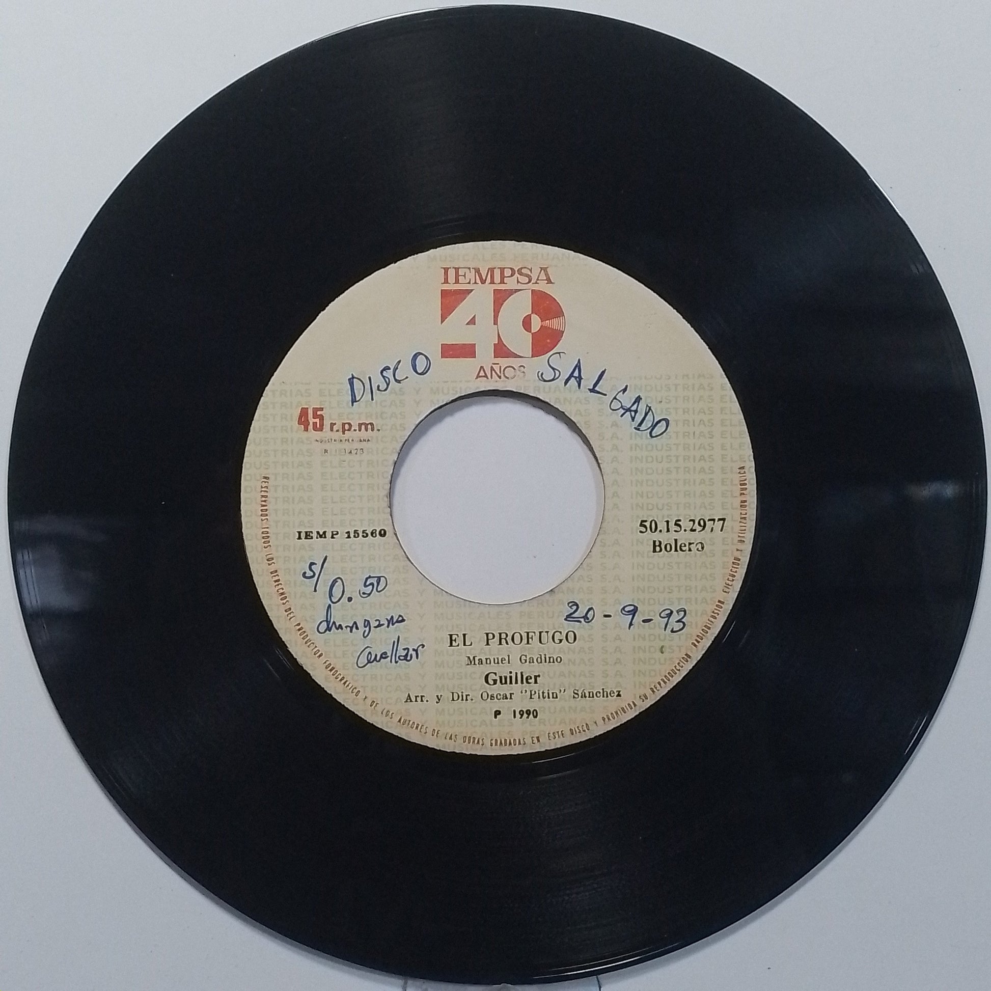 single 7" guiller mi linda quinceañera / el profugo made Peru 1990 latin bolero