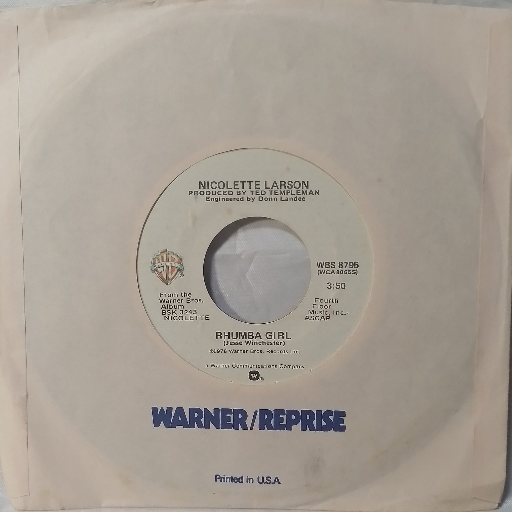 single 7" Nicolette Larson Rhumba Girl / Last In Love made usa 1978 con funda original pop rock
