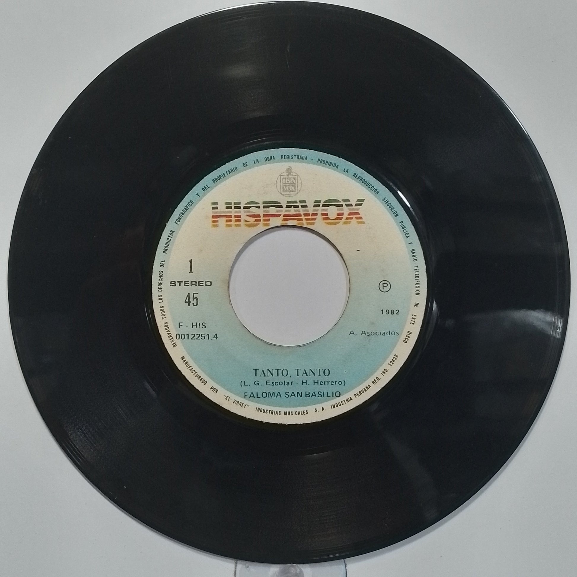 single 7" Paloma San Basilio Tanto Tanto / Abrazame made Peru 1982 latin pop